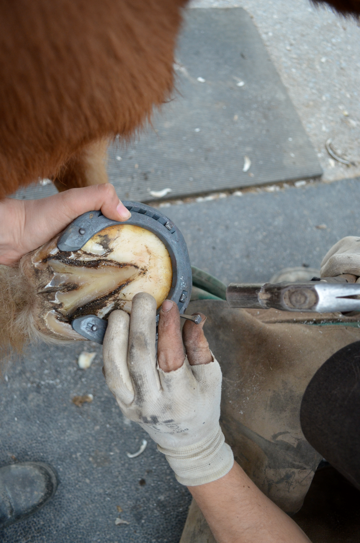 Im Herbst erlebe ich oft das Gegenteil. Durch dauerhafte Feuchtigkeit und Aufenthalt im Matsch werden die Hufe aufgeweicht und der Tragrand kann unter dem Gewicht des Pferdes nachgeben. Die Hufe werden weich und der Strahl kann empfindlich werden, was zu Lahmheit führen kann. In solchen Fällen ist die beste Lösung, das Pferd in trockene Umgebungen zu bringen.